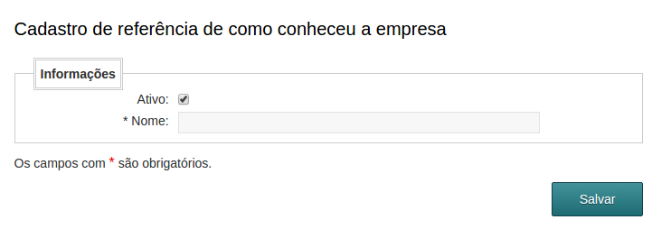 Para cadastrar novas referências acesse o menu Configurações → Como conheceu a empresa → Adicionar referência.