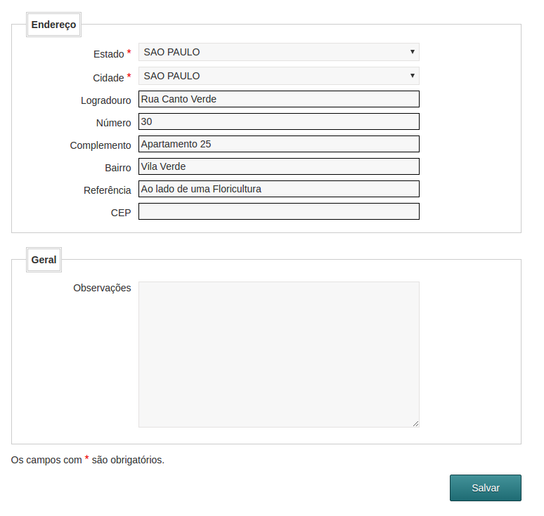 Os campos para a edição de um usuário são os mesmos campos do cadastro. Faça as alterações necessárias e clique no botão Salvar.