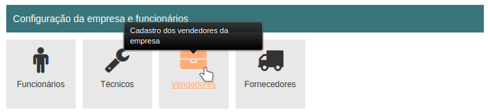 Para cadastrar um vendedor acesse a opção Vendedores na página de Configurações do sistema:
