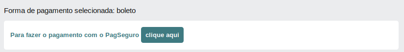 Após alguns segundos será exibido o botão para finalizar o pagamento usando o PagSeguro: